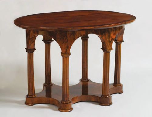 In der frühen Entwicklungsphase des Biedermeier treten ovale Tische vermehrt in Wien und Umgebung auf und zeigen in gefälliger Form ihre Neigung zu gebogten Elementen.